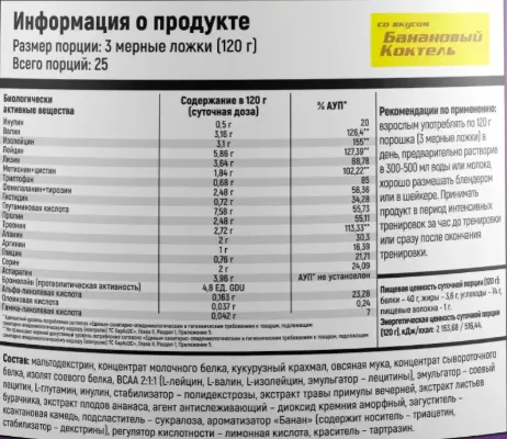 - 40 г белка, включая концентрат сывороточного и молочного белка, изолят соевого